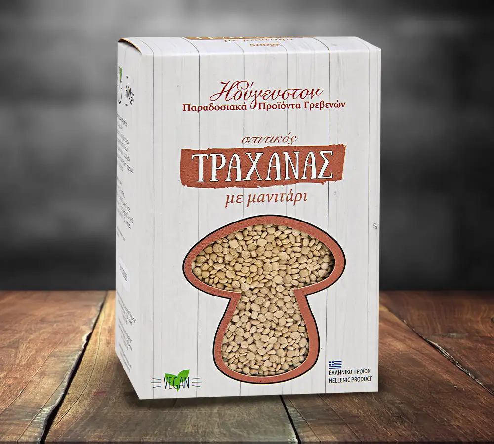 Συστατικά:Τραχανάς (αλεύρι σίτου, νερό, αλάτι), αποξηραμένο μανιτάρι βωλίτης σε σκόνη.