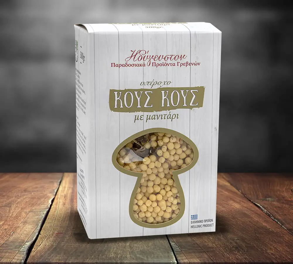 Συστατικά: Κους κους (αλεύρι, αυγό, γάλα), καρότο, αποξηραμένο μανιτάρι βωλίτης (porcini), κρεμμύδι, μαϊντανός